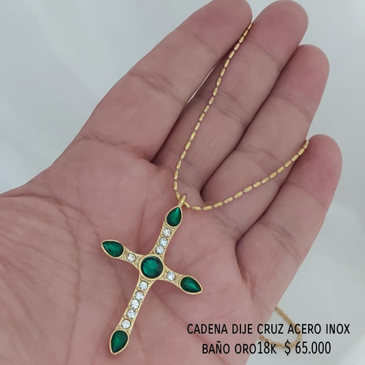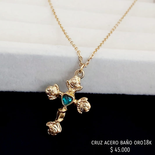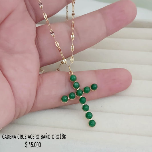 Cadena cruz acero inox baño oro18k